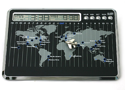 相同以世界地圖和飛機航行的概念,是電子鐘的形式。