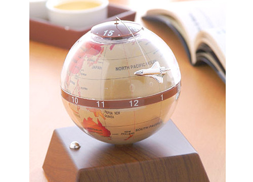 時間流逝,地球移轉動著,代表秒針的飛機就像在旅行著。